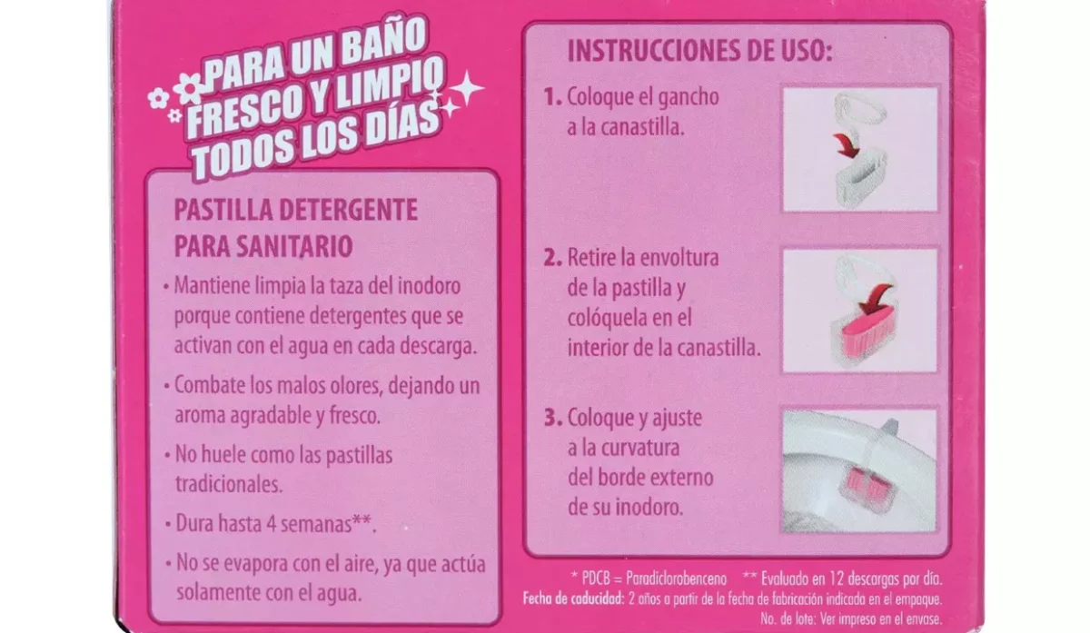- Mantiene limpia la taza del inodoro porque contiene detergentes que se activan con el agua en cada descarga.