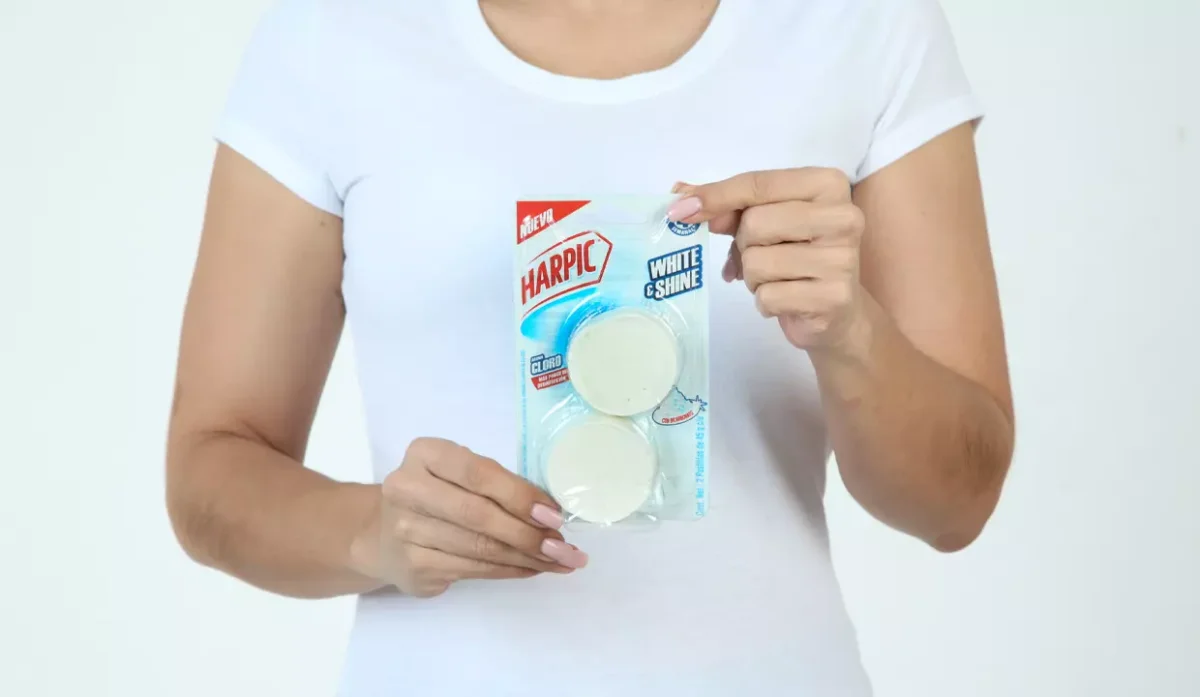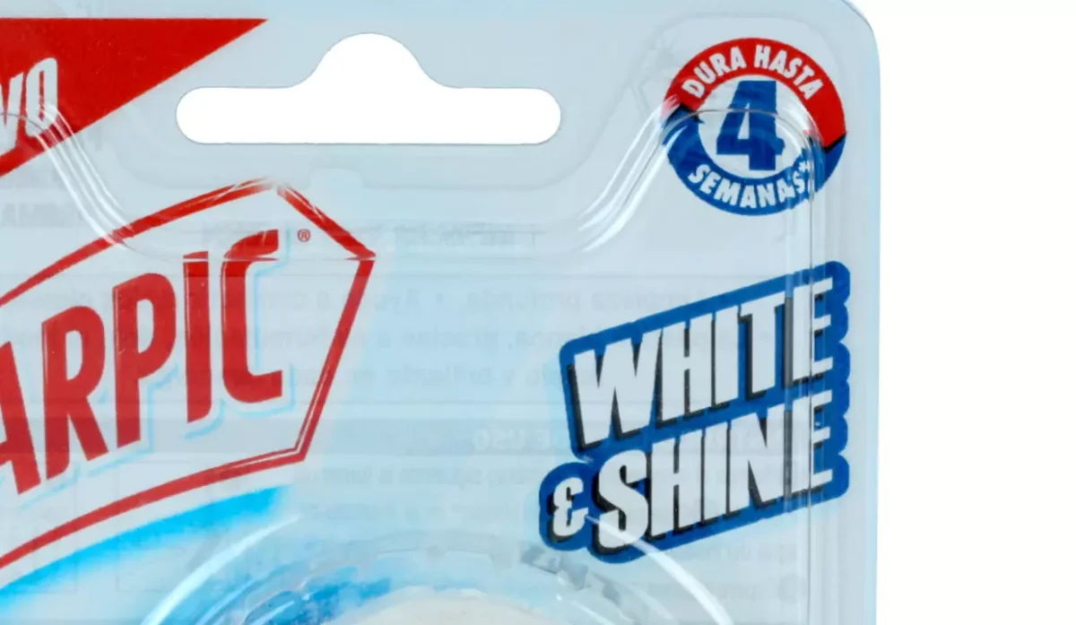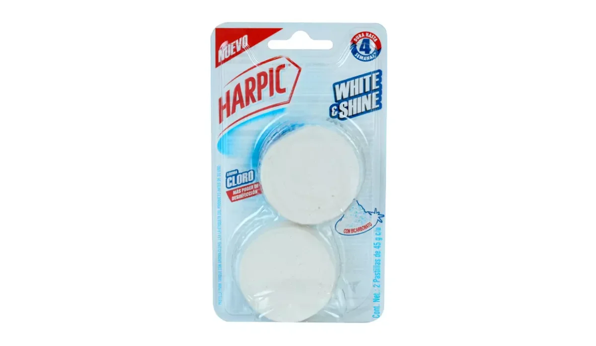 - Contiene bicarbonato, deja el inodoro limpio y brillante en cada descarga.