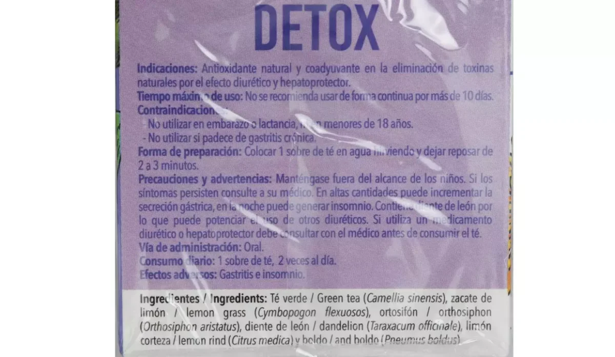 - Té verde, zacate de limón, diente de león, limón corteza y boldo.
