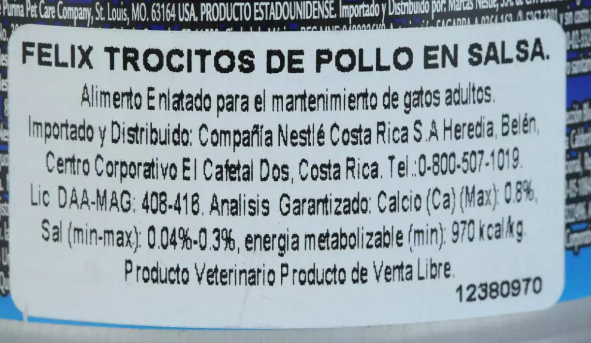 - Alimento enlatado para el mantenimiento de gatos adultos.