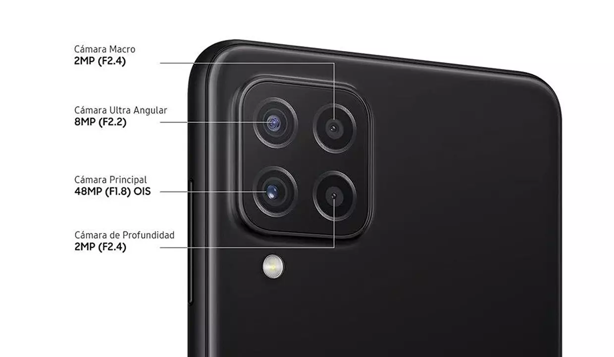 - 3 cámaras traseras: principal (48 MP + 5 MP + 2.0 MP), número F múltiple (F1.8), gran angular (F2.2), macro (F2.4).