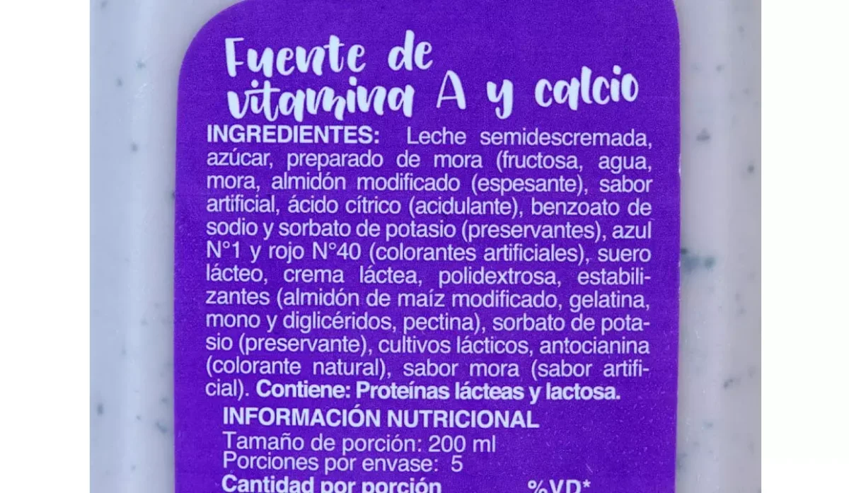 - Leche semidescremada, azúcar, preparado de mora, agua, azúcar y almidón modificado.