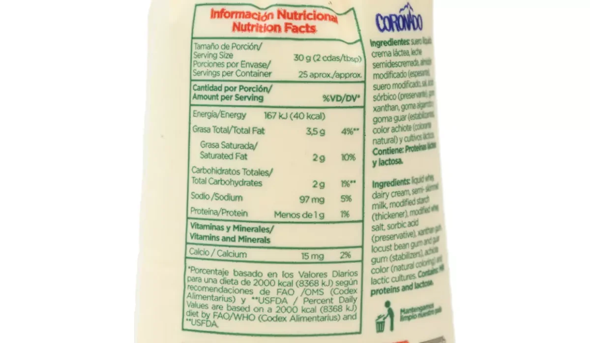 - Suero líquido, crema láctea, leche semidescremada y sal.