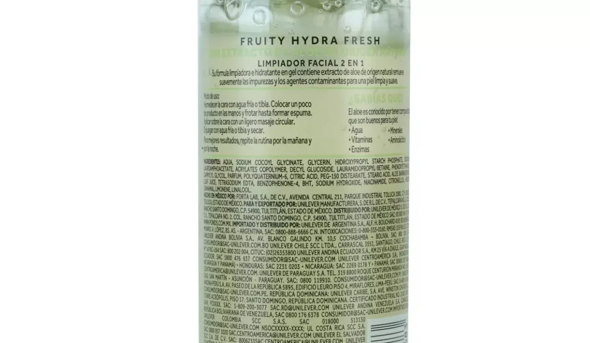 - Su fórmula limpiadora e hidratante en gel contiene extracto de aloe de origen natural.