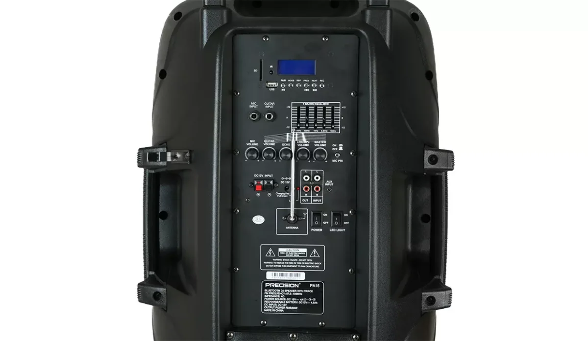 - Perilla de control: volumen / master / guitarra / mic. volumen / eco / volumen de línea / MP3.