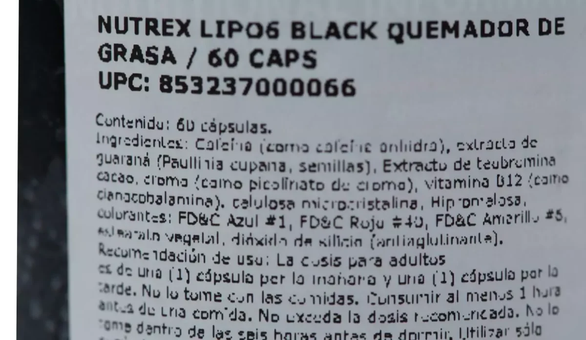 - Cafeína, extracto de guaraná, extracto de teobromina cacao, vitamina B12, celulosa y colorantes.