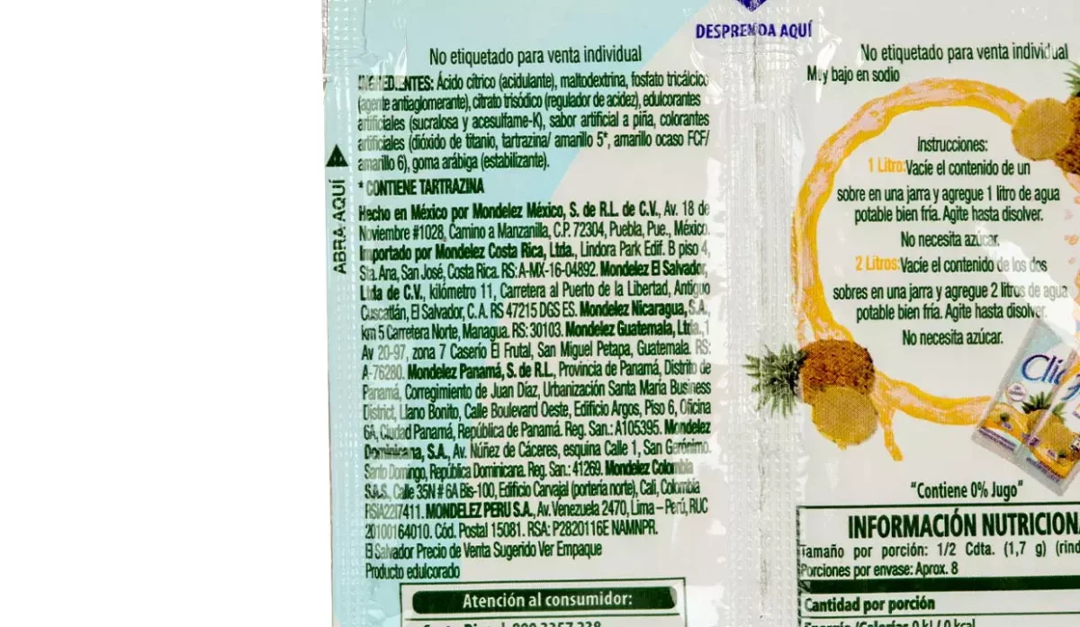 - Ácido cítrico y saborizantes idéntico al natural de piña.