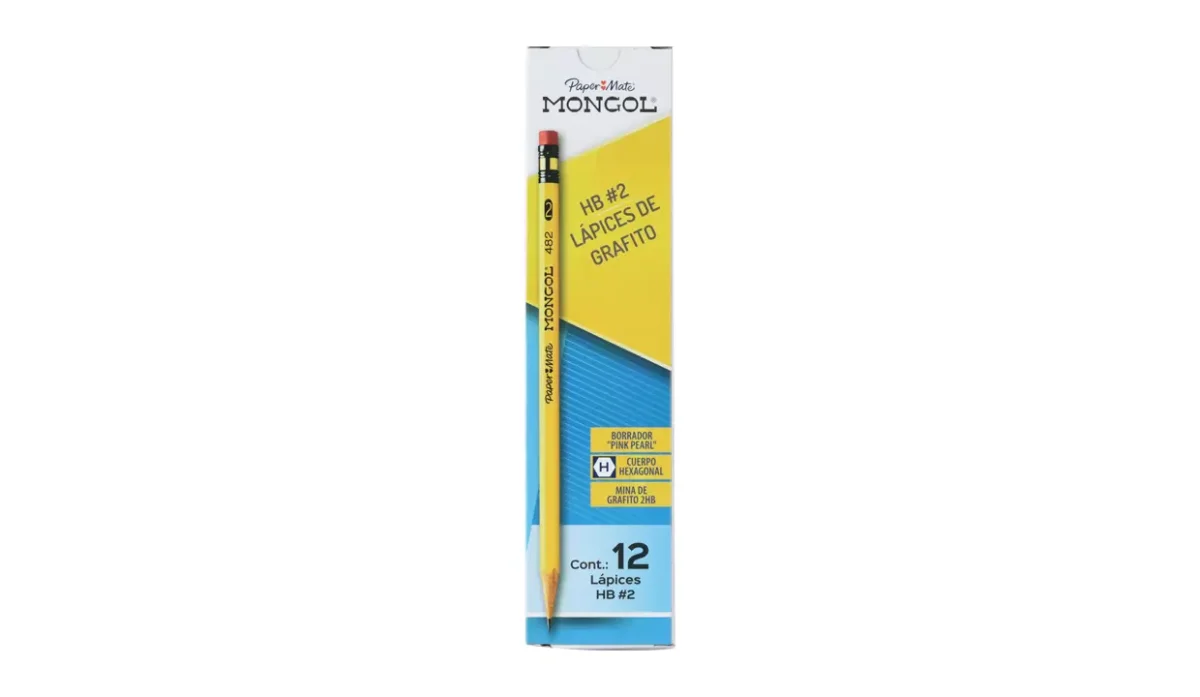 - Con borrador Pink Pearl que no mancha ni daña el papel.