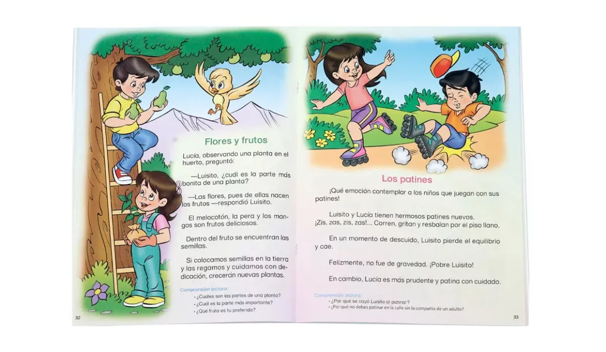 - Con escenas relacionadas a las actividades cotidianas y naturales de su edad.