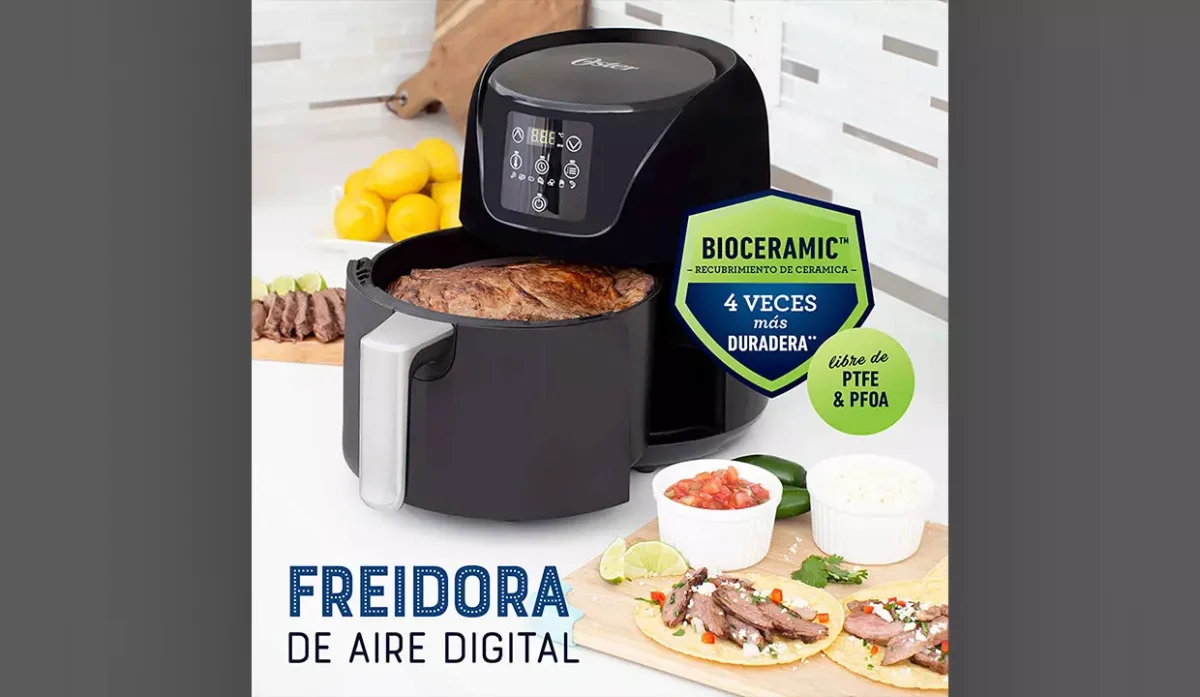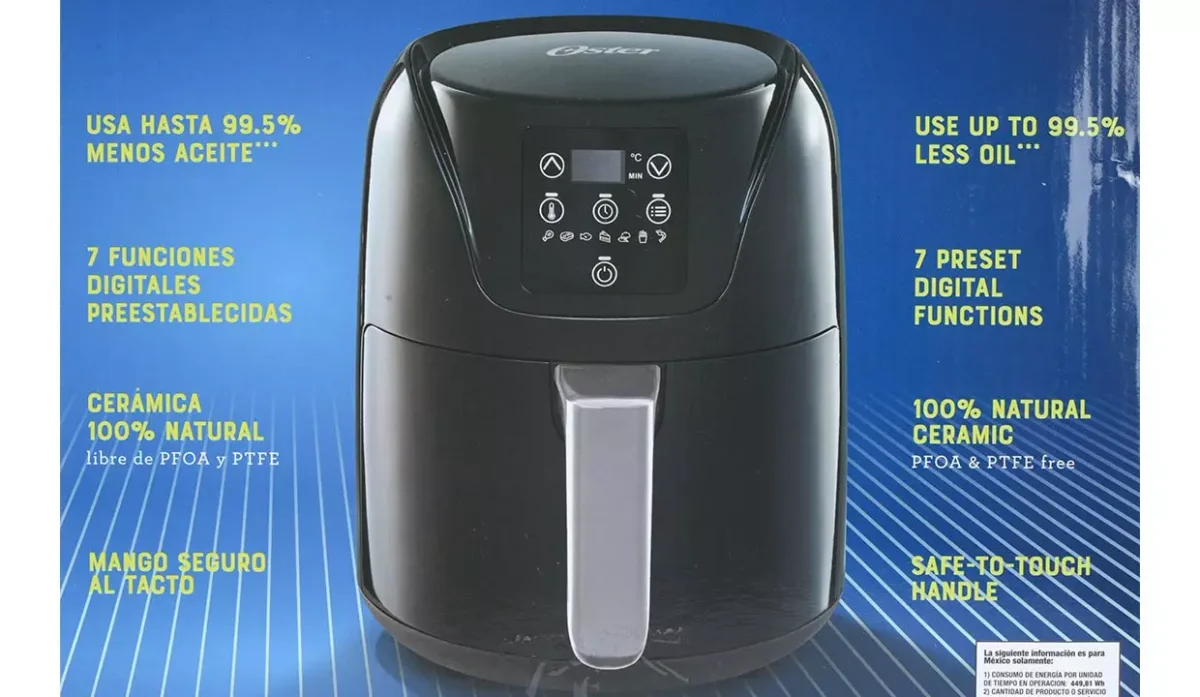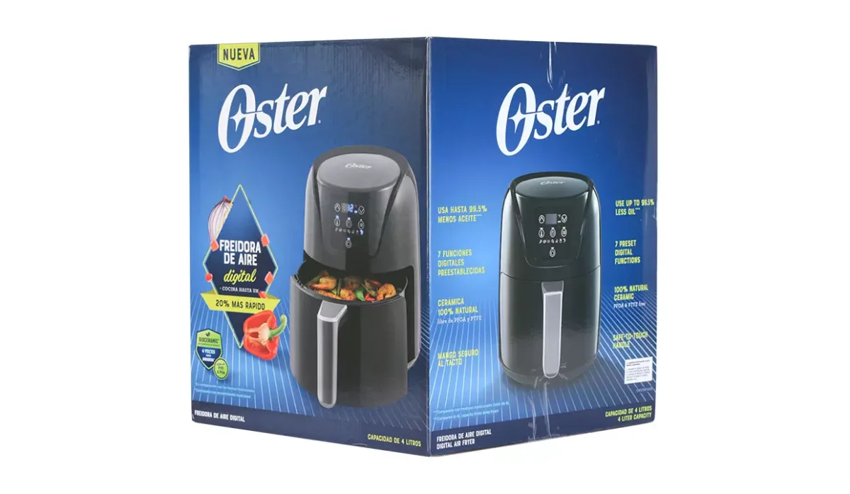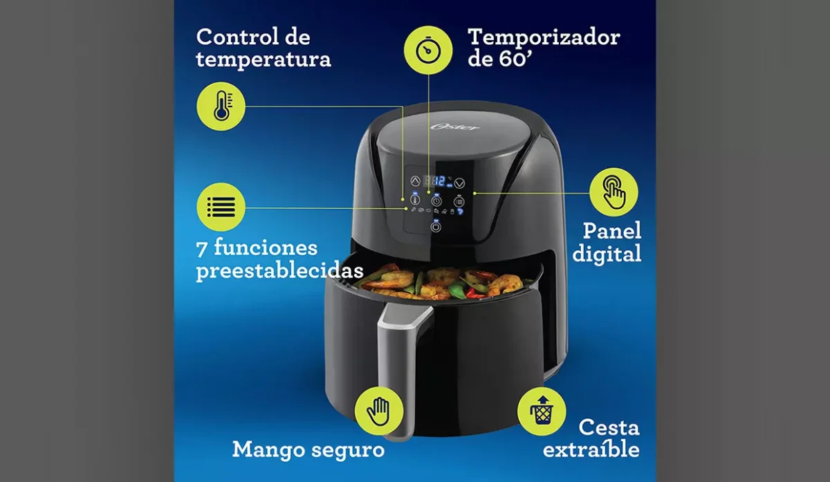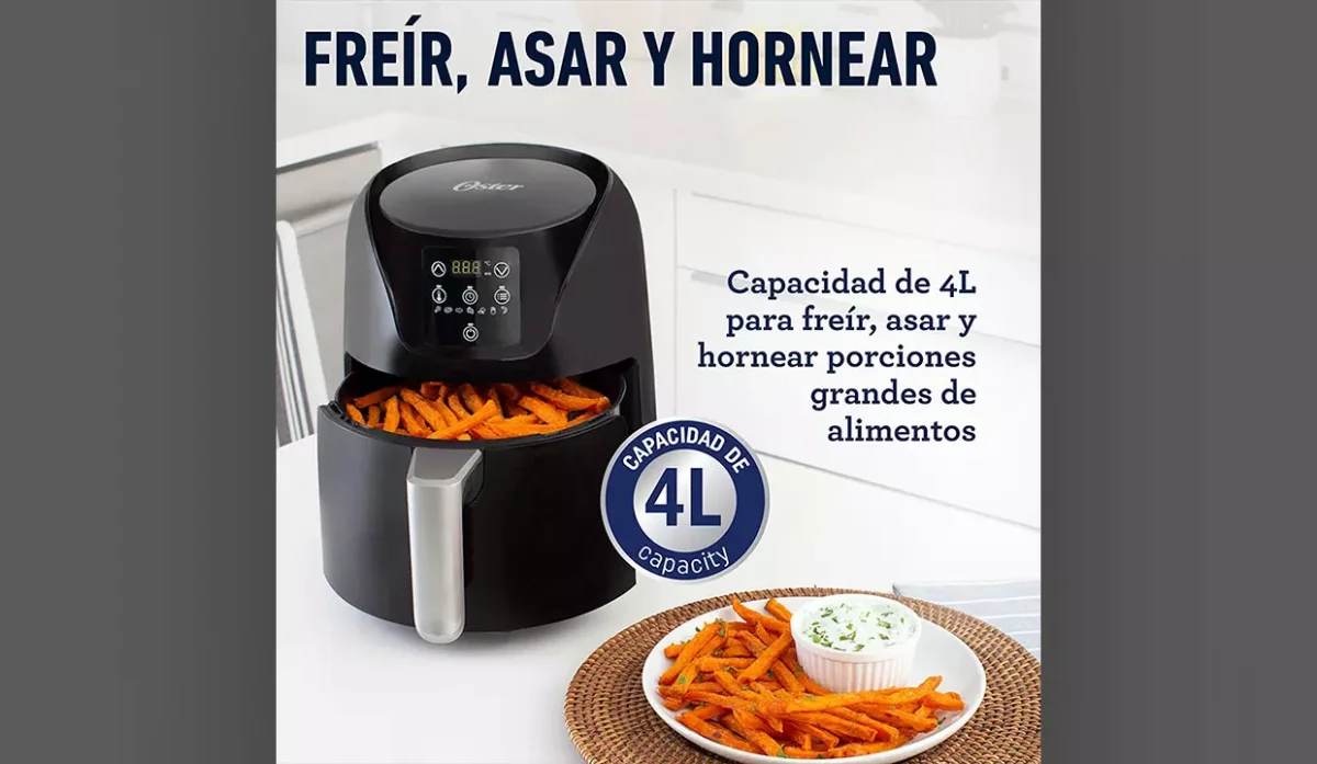 - Cocina hasta con 99.5% menos aceite, comparado con freidoras tradicionales Oster.