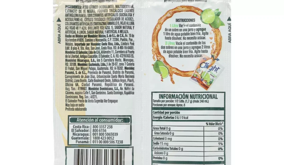 - Ácido cítrico y saborizantes idéntico al natural de limón.