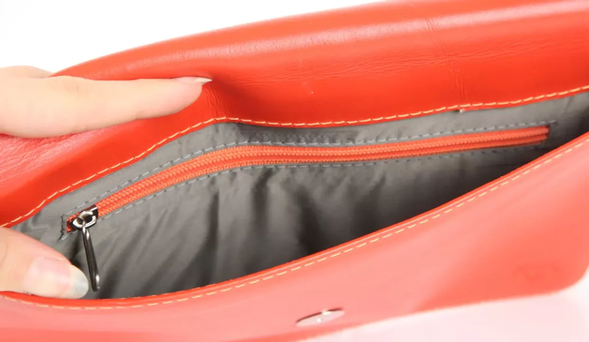 - Su interior cuenta con un compartimento principal con cierre de broche y uno pequeño con zipper.