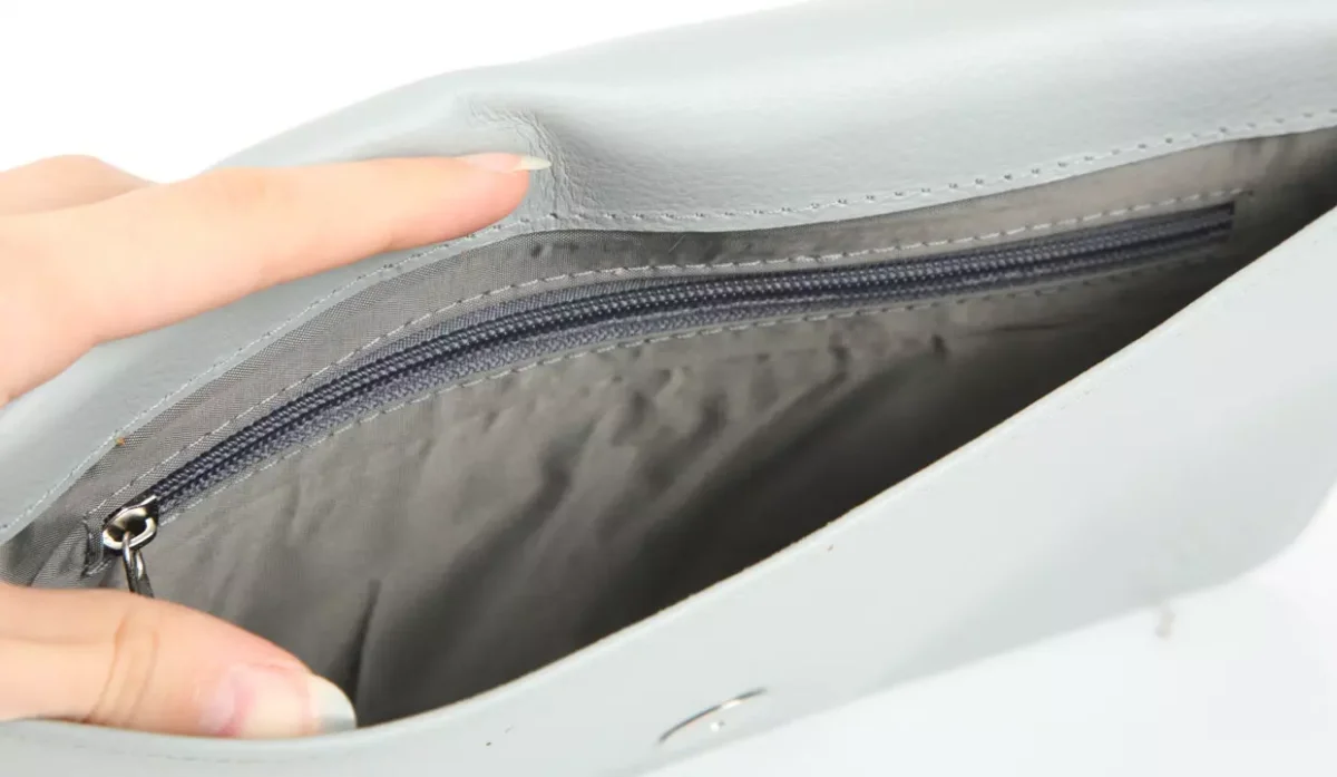 - Su interior cuenta con un compartimento principal con cierre de broche y uno pequeño con zipper.