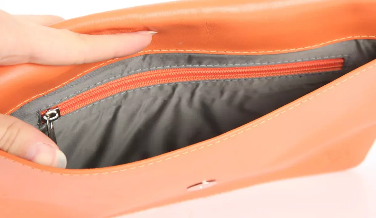 - Su interior cuenta con un compartimento principal con cierre de broche y uno pequeño con zipper.