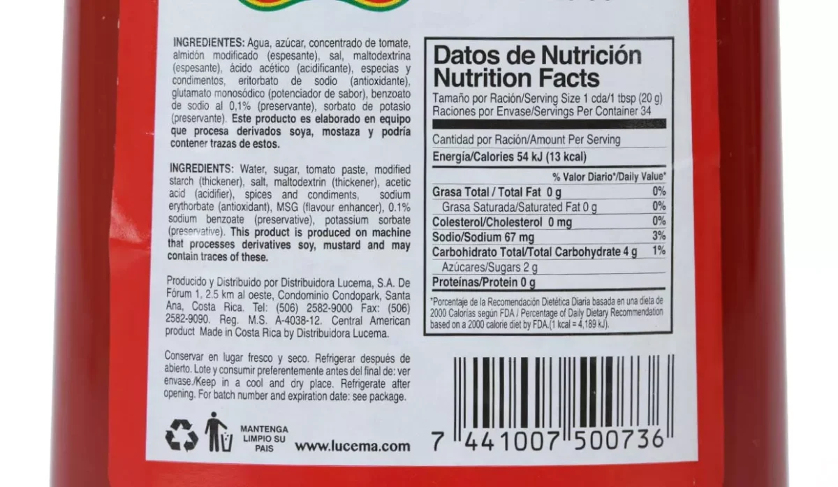 Agua, azúcar, concentrado de tomate, especias y condimentos.