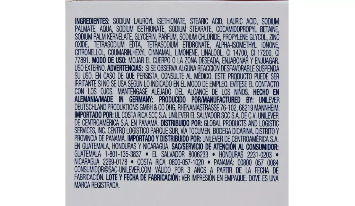 - Jabón de tocador compuesto con 1/4 de crema humectante.