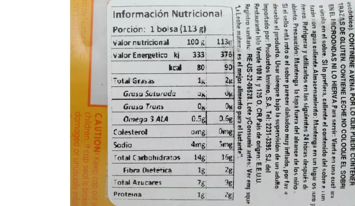 - Libre de lácteos, maní, soya, frutos secos, pescados y mariscos.