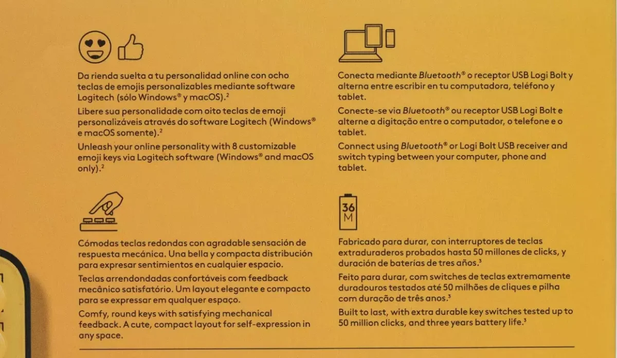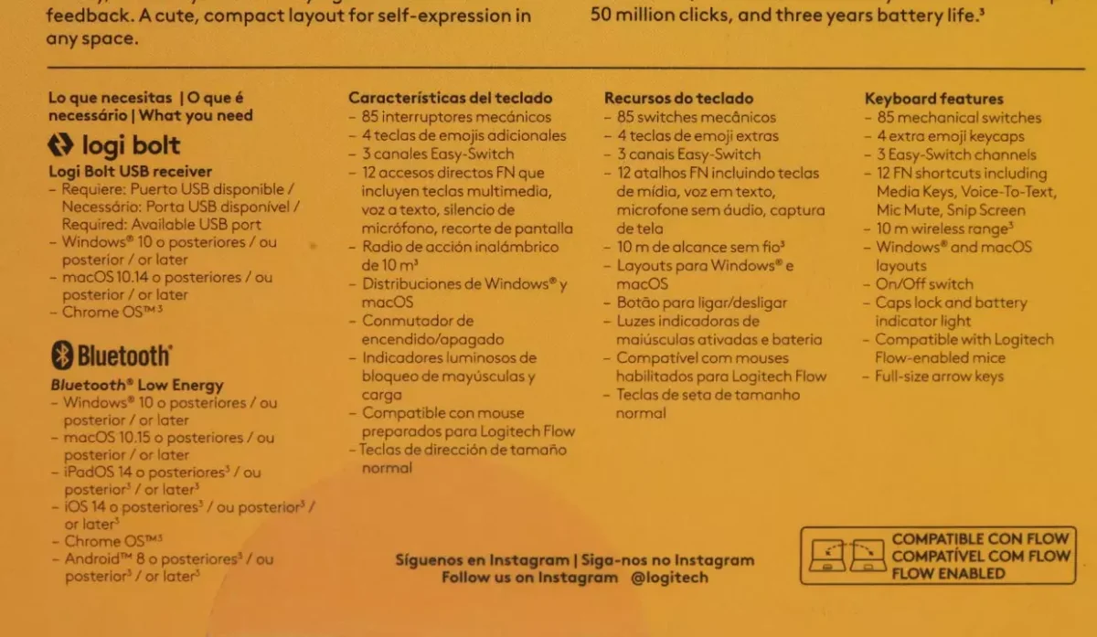 - Conecta tu computadora, tablet o teléfono. De momento, los emojis y el software se admiten únicamente en Windows y macOS, por tecnología Bluetooth inalámbrica o con el receptor USB Logi Bolt.