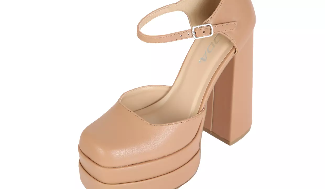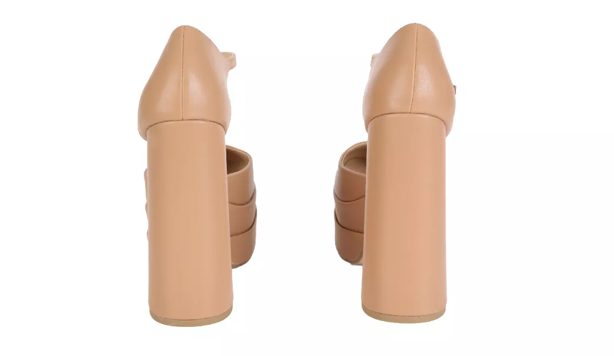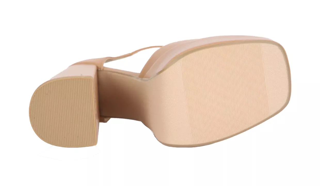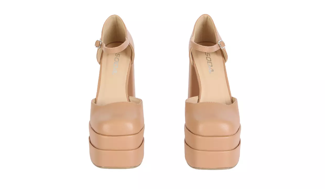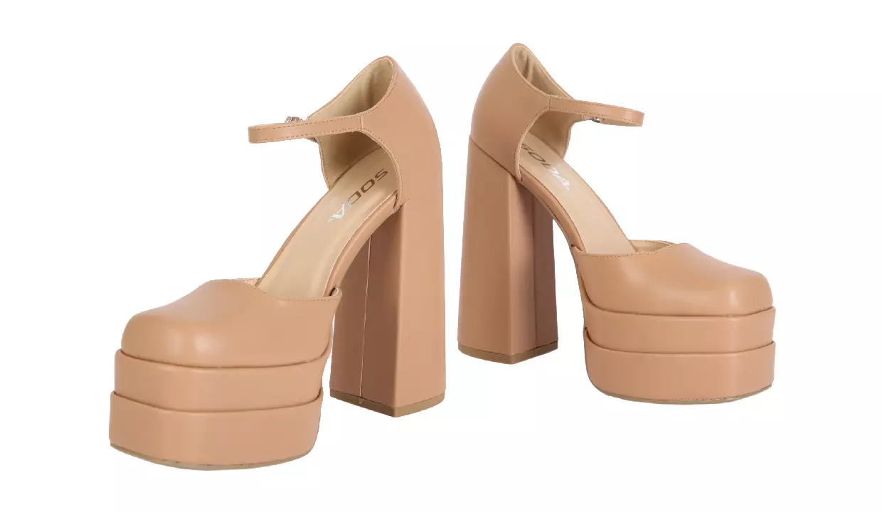 - Con tacón acampanado grueso y suela de plataforma.