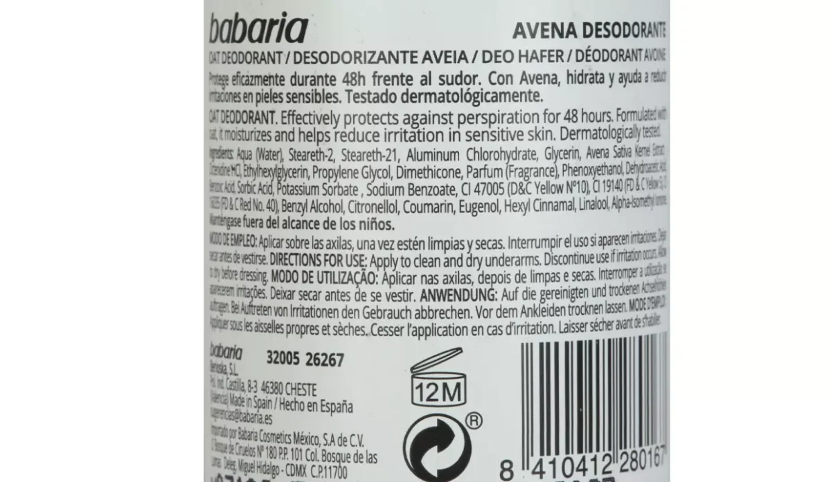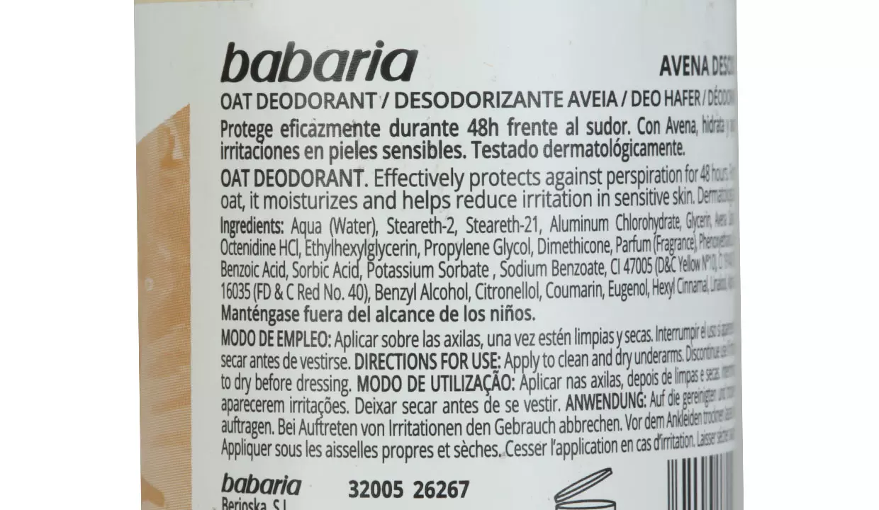 - El extracto de Avena disminuye las irritaciones provocadas por los desodorantes.