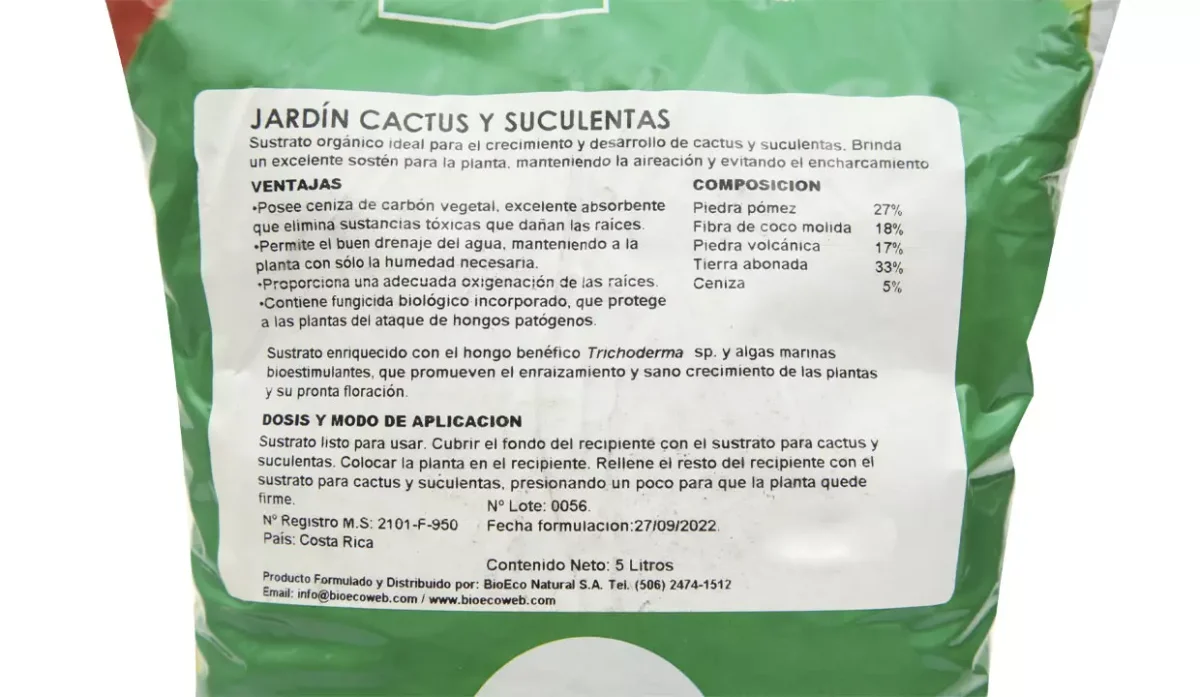 - Sustrato orgánico ideal para el crecimiento y desarrollo de cactus y suculentas.