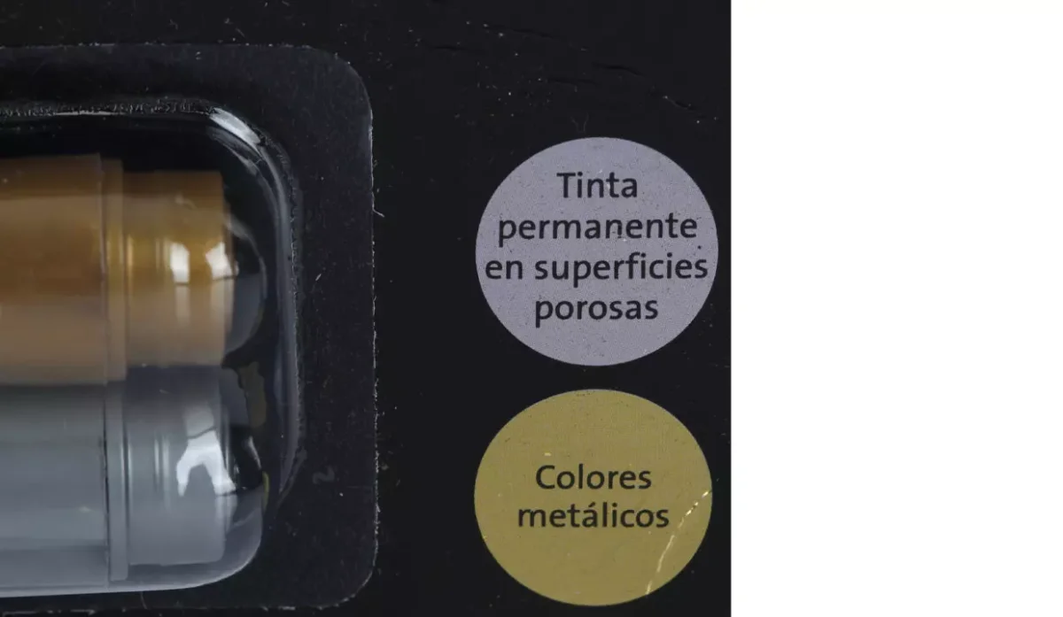 - Marca permanentemente sobre tela, madera, ceramica, papel, cartulina, foamy, cuero, entre otras superficies porosas.