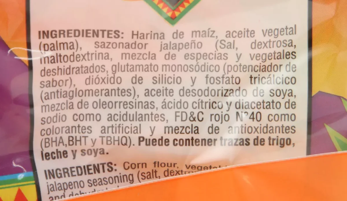 - Harina de maíz, aceite vegetal, sazonador jalapeño y sal.