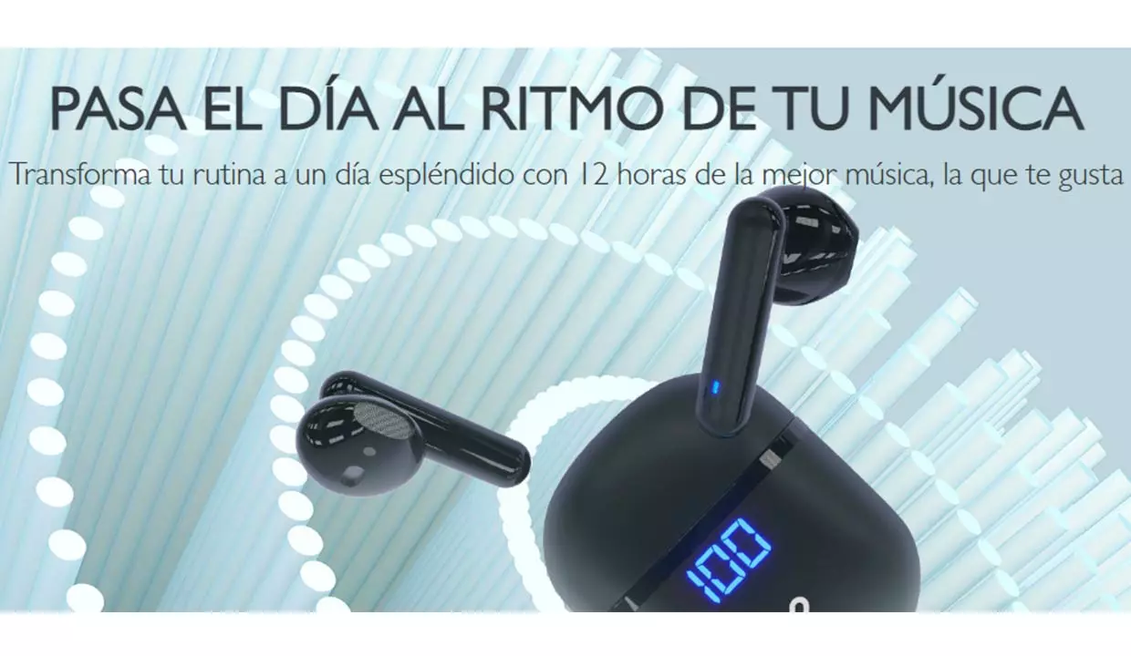 - El estuche de carga incluye una pantalla LED para mostrar el porcentaje de batería.