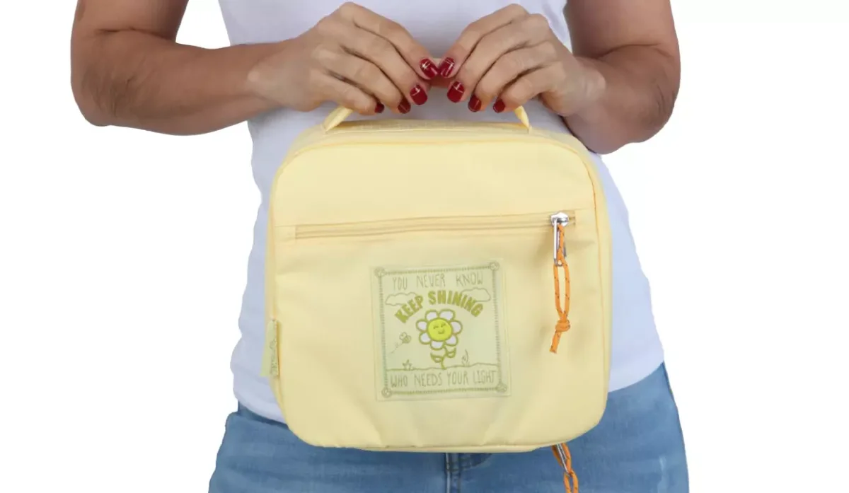 - Bolsillo exterior con zipper para utensilios, servilletas u otros artículos pequeños.