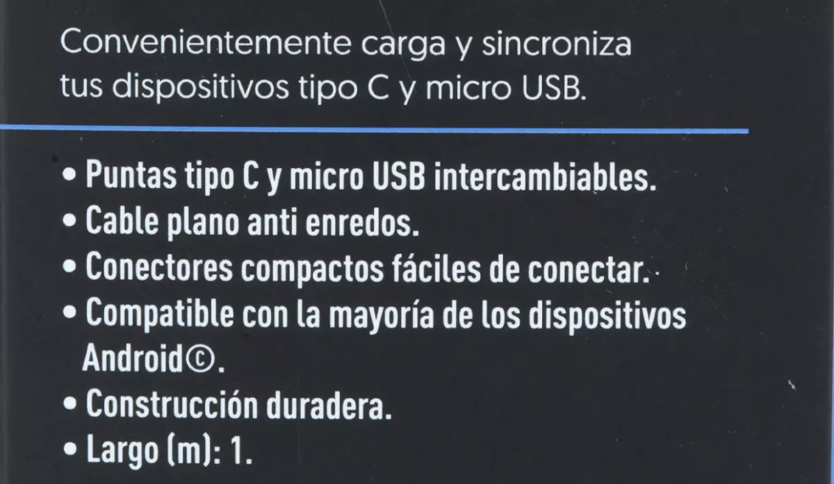 - Puntas intercambiables de tipo C y micro USB macho.