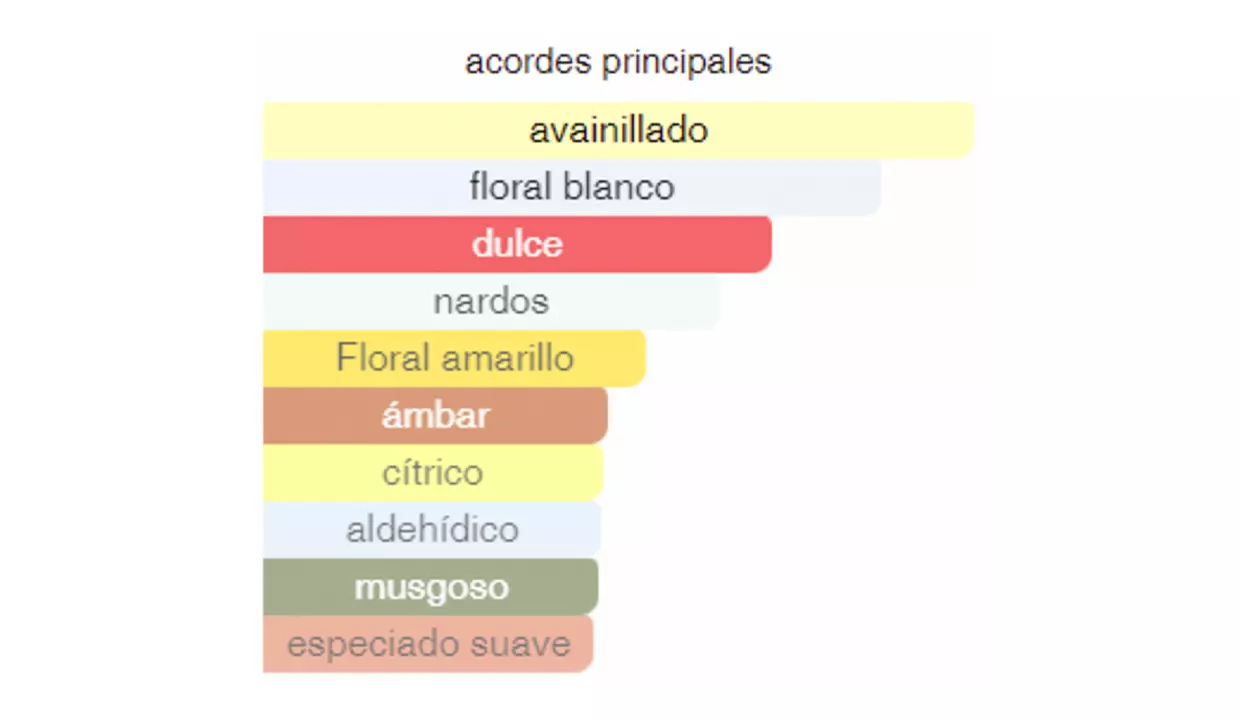 - Notas de fondo: vainilla, haba tonka y musgo.