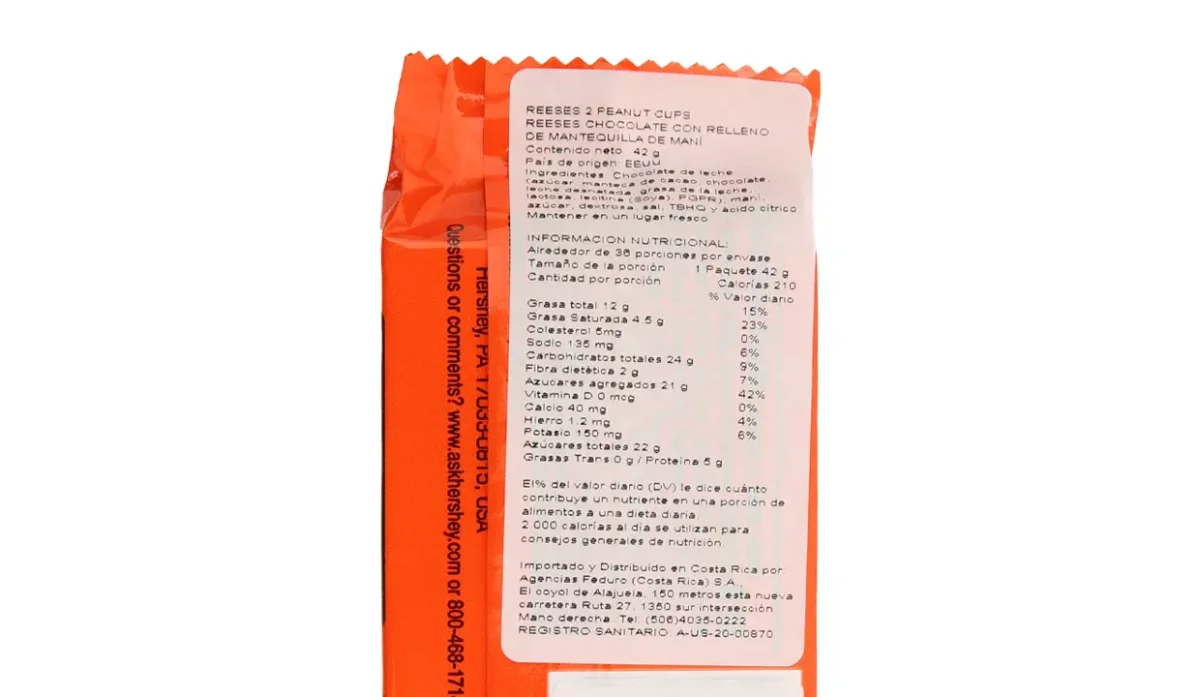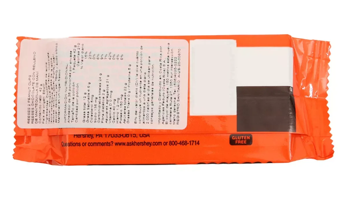 - Chocolate de leche, azúcar, manteca de cacao, grasa de leche, maní.
