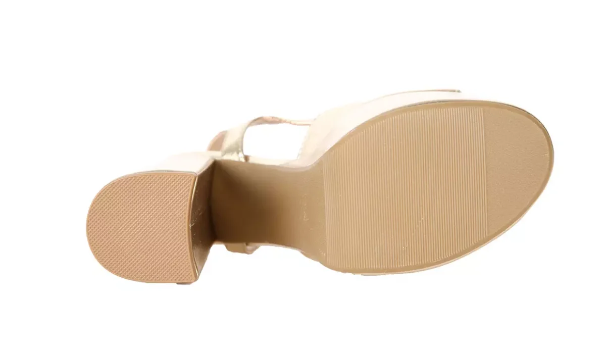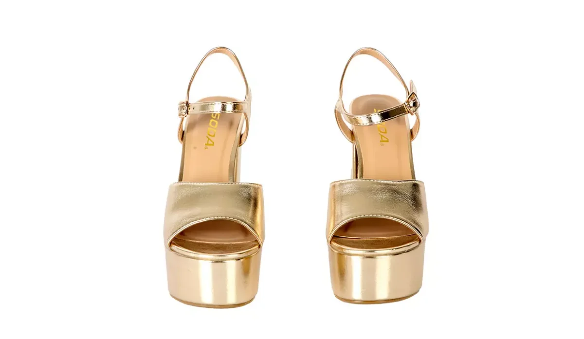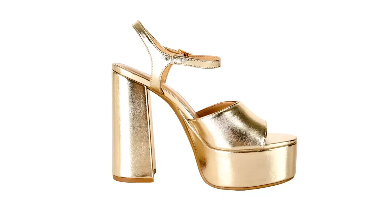 - Con tacón grueso y suela de plataforma.