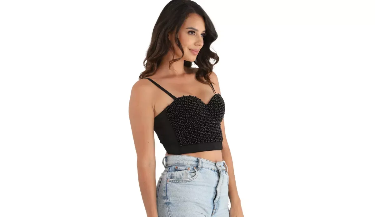 - Con decoración frontal de bisutería.