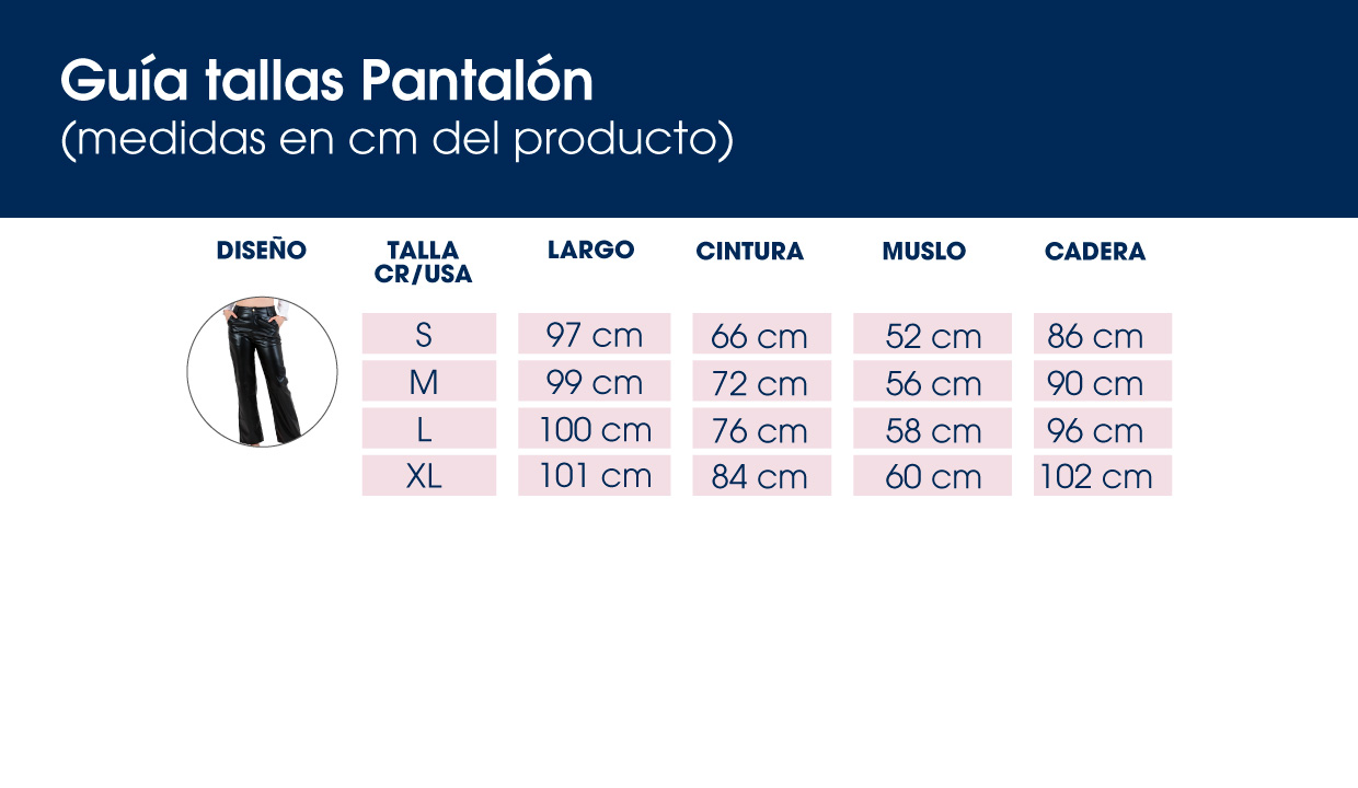 - Pantalón con bolsillos laterales y simulador de bolsillos en la parte posterior.