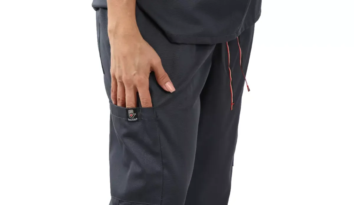 - Pantalón jogger con 4 bolsillos cargo (2 frontales y 2 laterales), bolsillo trasero y ranura para lapicero.