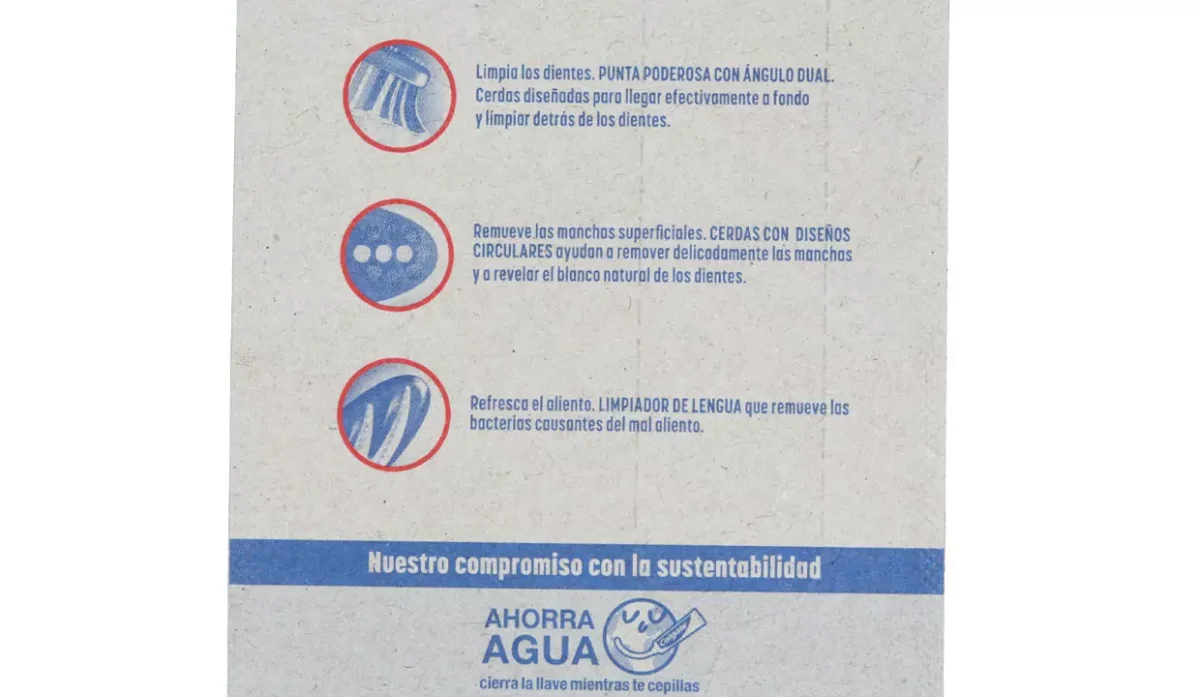 - Con limpiador de lengua que remueve las bacterias causantes del mal aliento.