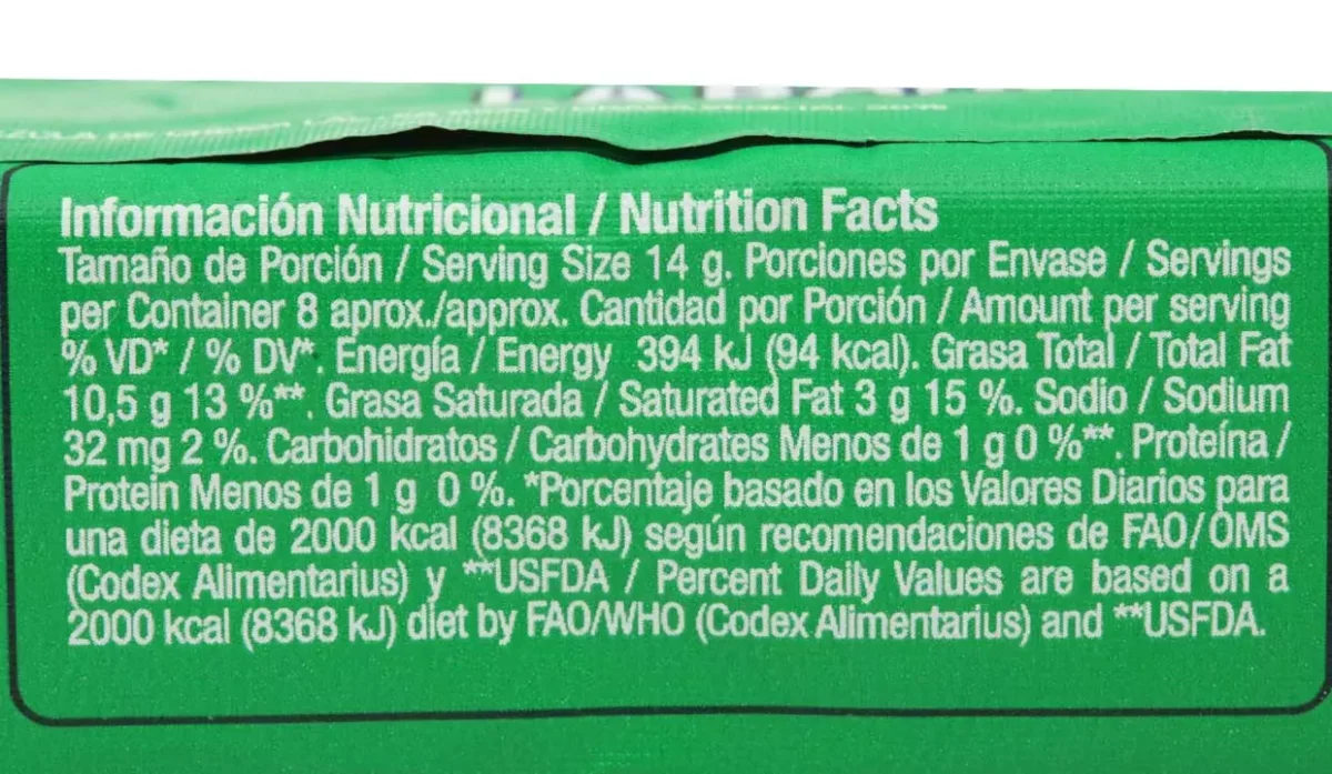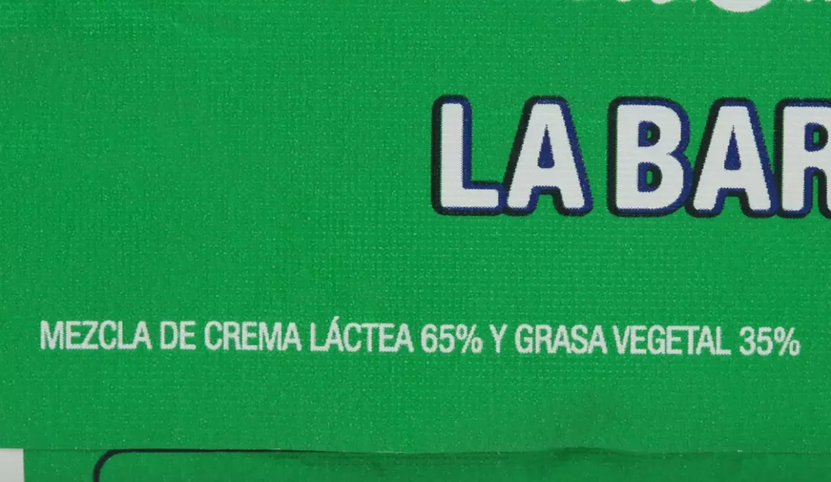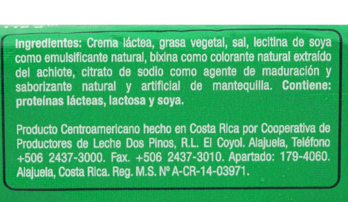 - Crema láctea, grasa vegetal, sal, sabor natural y artificial de mantequilla.