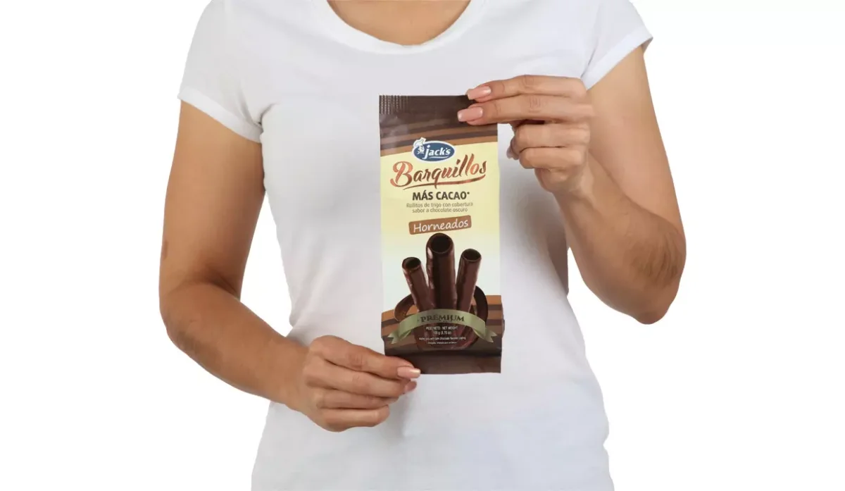 - Rollitos de trigo con cobertura sabor a chocolate oscuro.