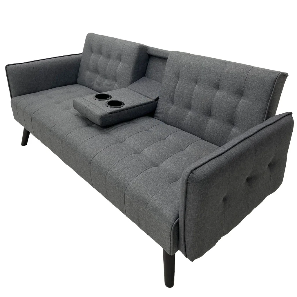SOFÁ CAMA DE LINO CON PORTAVASOS TOKOA GRIS