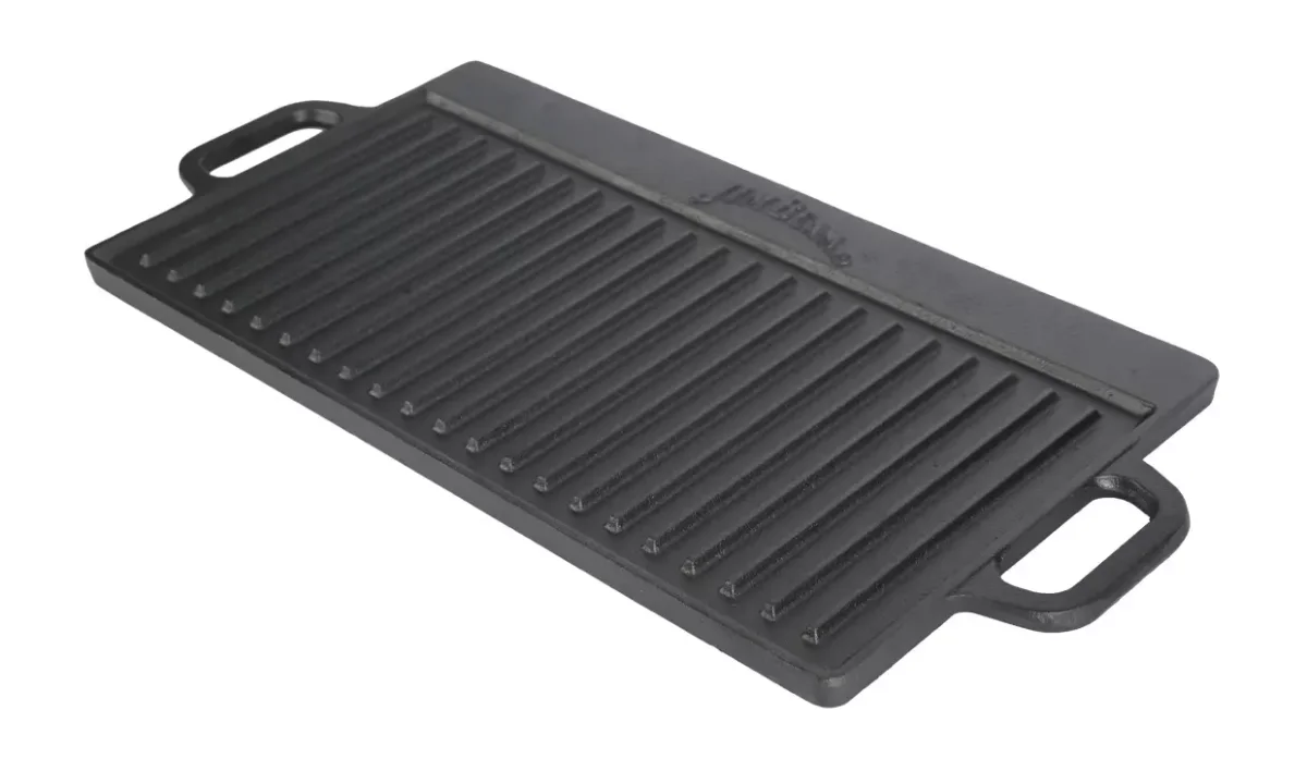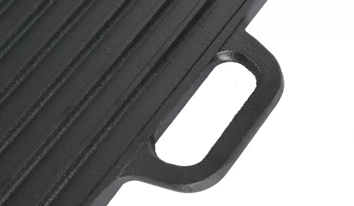 - Esta pieza es reversible permite la cocción simultánea en sus superficies planas y estriadas.