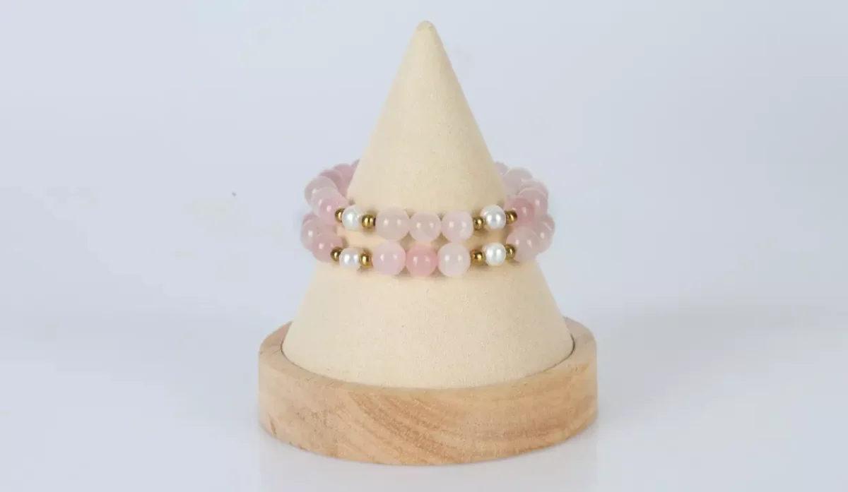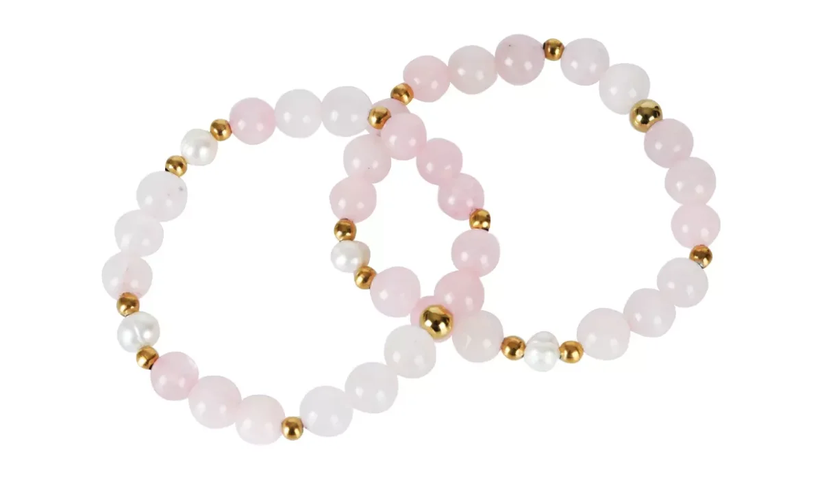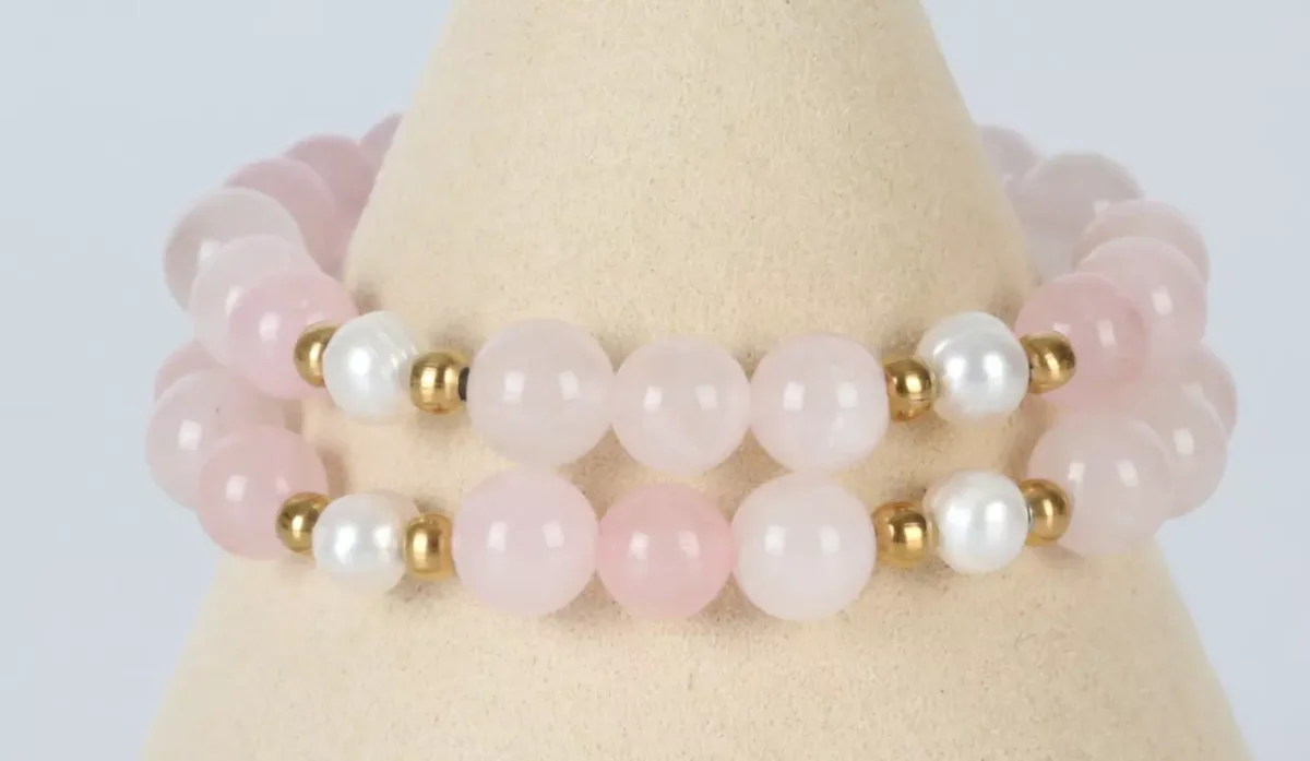 - Material cuarzo rosa, perlas cultivadas y acero inoxidable.