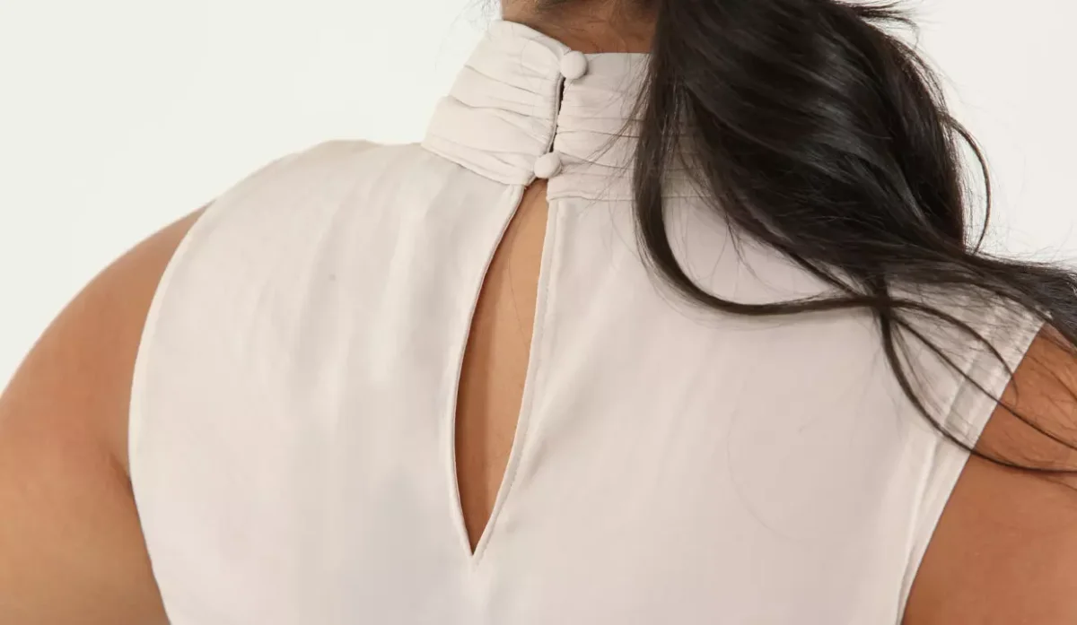 - Cuenta con abertura en la parte posterior con cierre de botones.