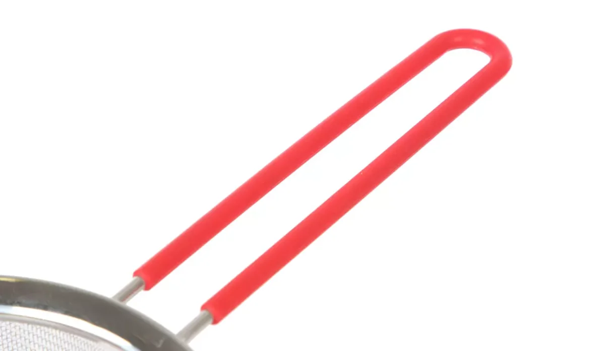 - Posee un mango cubierto de silicón rojo.