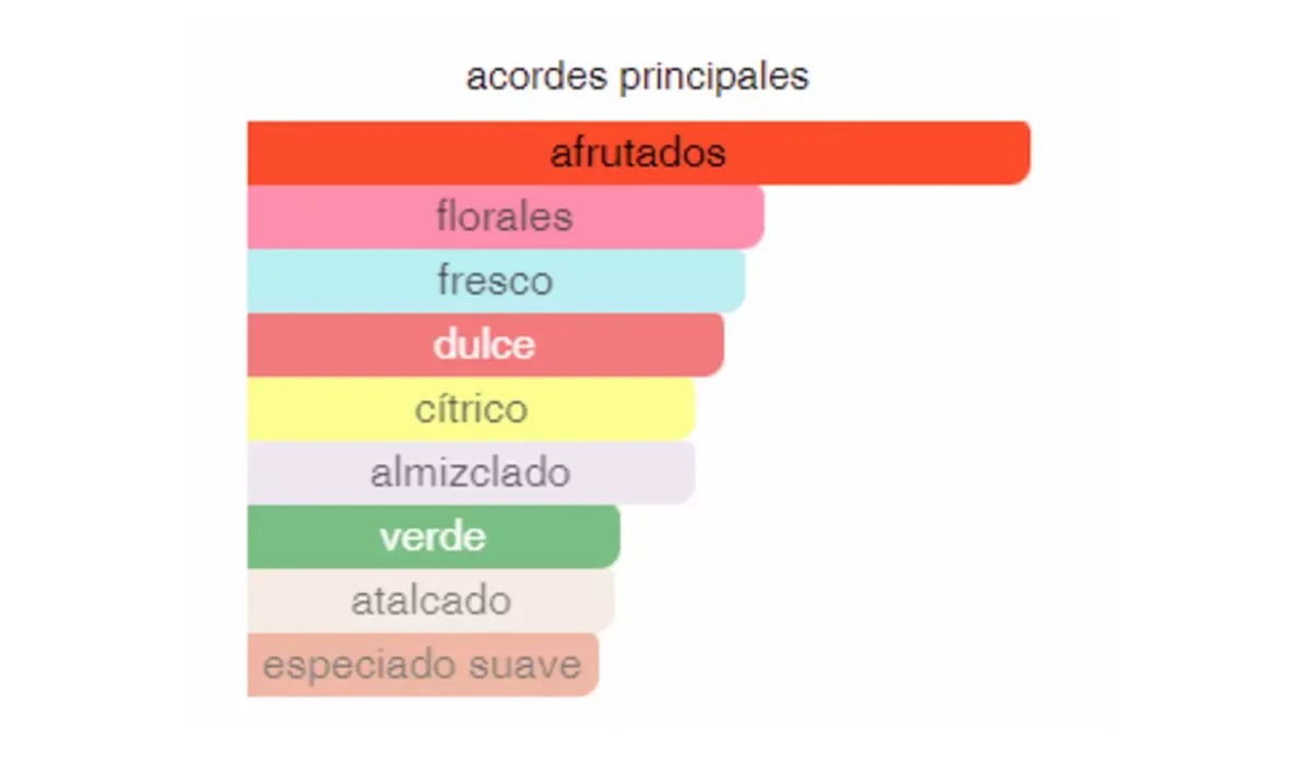 - Notas de corazón: grosella blanca, peonía y jazmín.