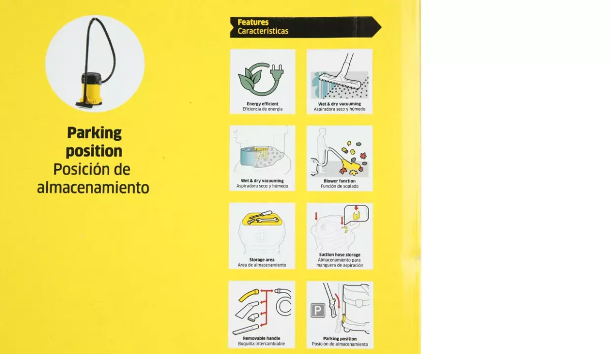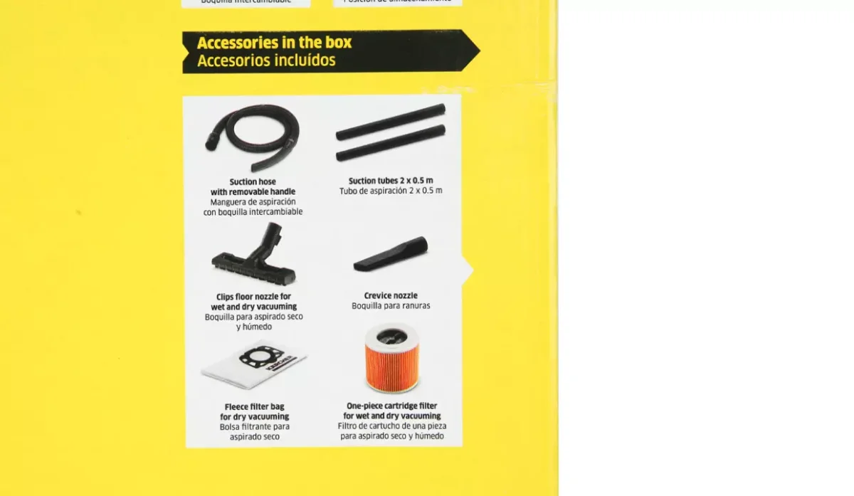 - Tanto el equipo como la manguera de aspiración y la boquilla para suelos con clips combinan a la perfección para obtener los mejores resultados en la limpieza con suciedad seca, húmeda, fina o gruesa.