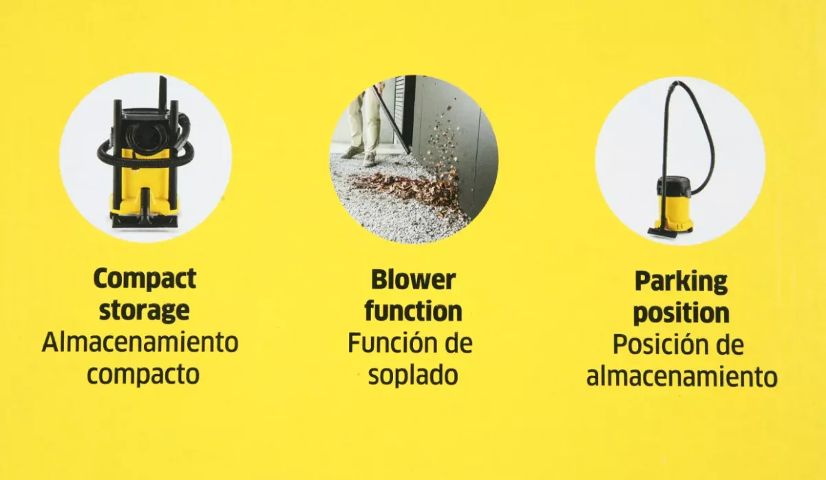 - La función de soplado es útil para la limpieza en zonas de difícil acceso.
