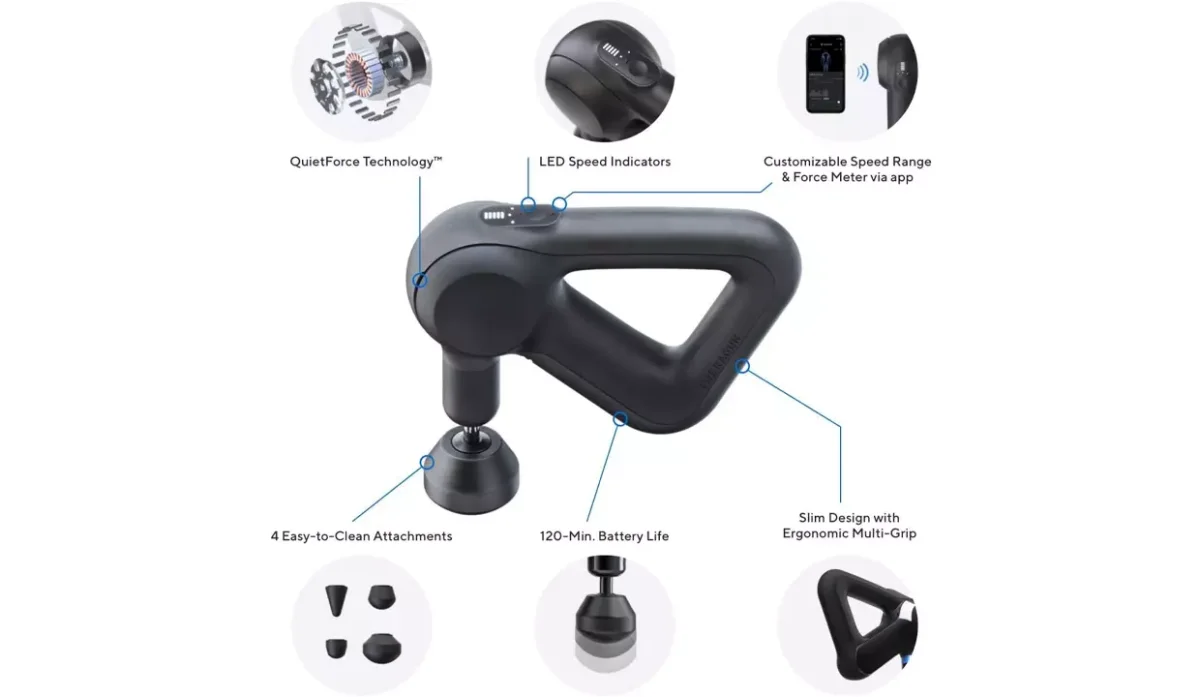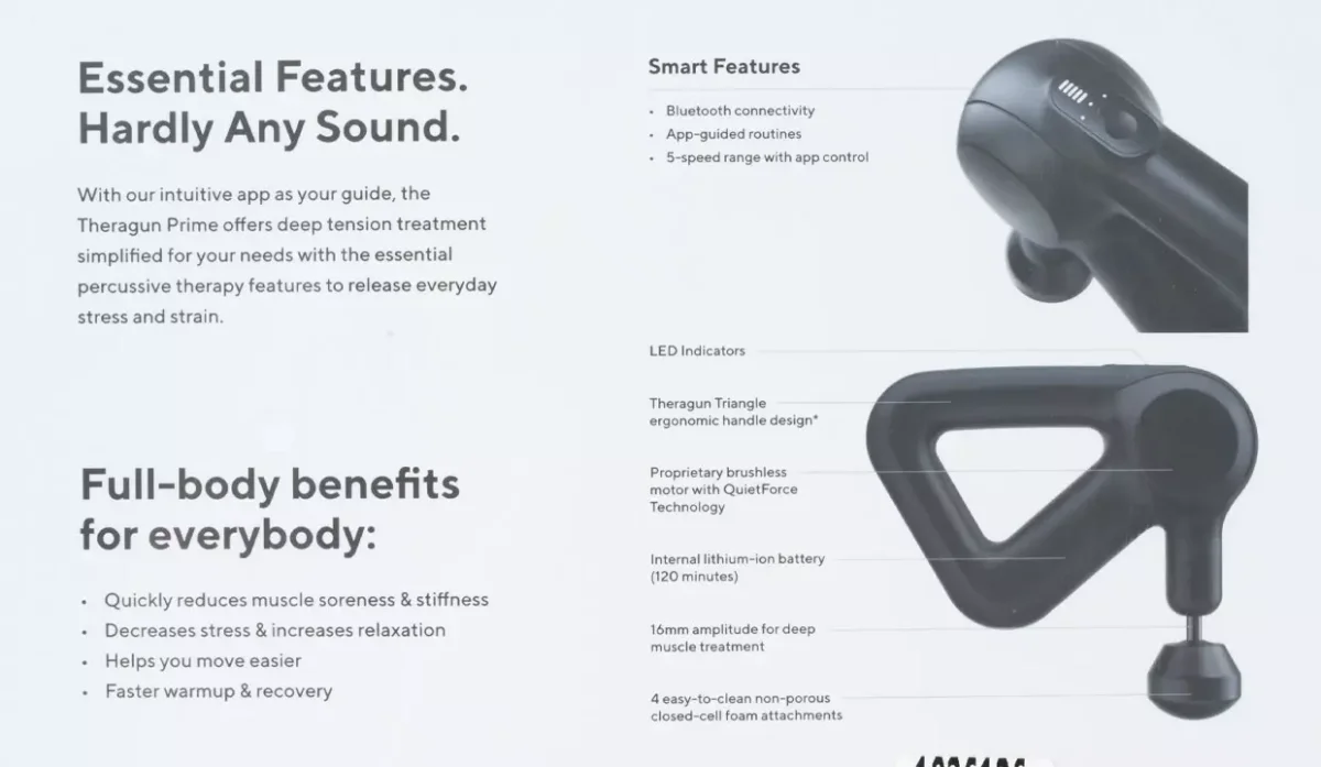 - Este dispositivo de terapia de percusión inteligente simplificado prioriza las características esenciales que necesita mientras mantiene el poder y la eficacia del tratamiento muscular profundo.