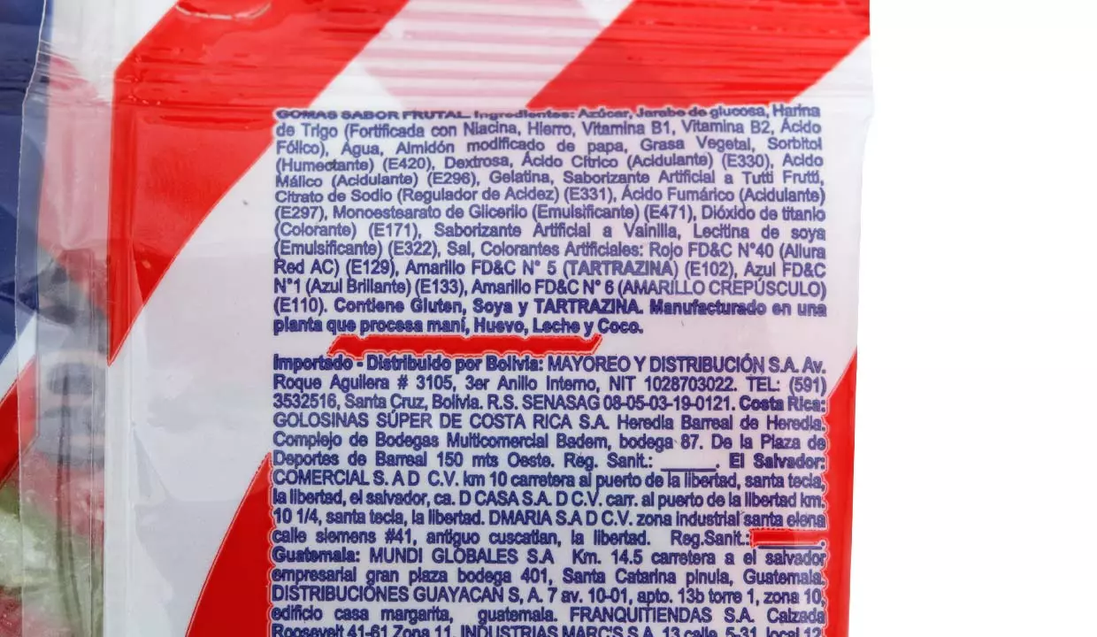 - Contiene: gluten, soya, tartrazina, maní, huevo, leche y coco.
