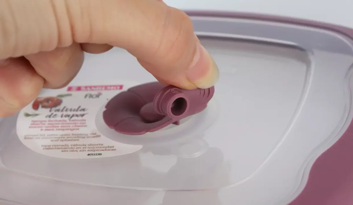 - Cuenta con válvula manual que permite sea usado en el microondas tapado y evita que quede sucio y con olor.